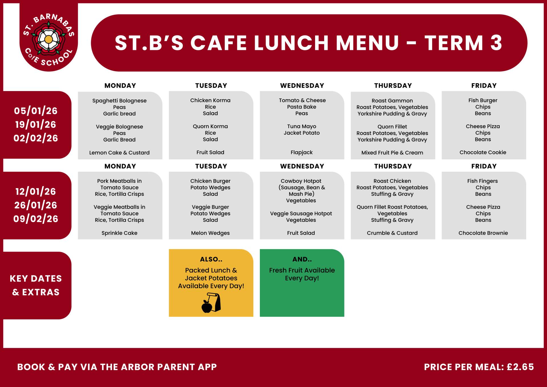 Lunches are priced at £2.65 per meal.