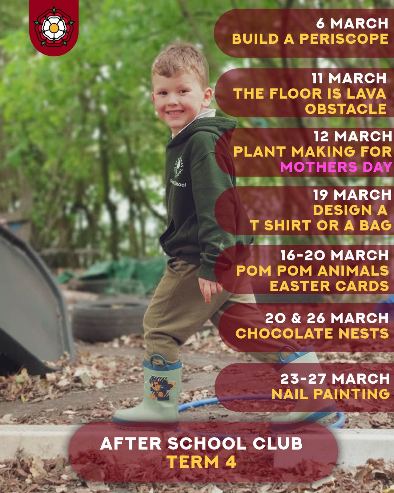 Bookings must be made in advance through Arbor. Payment can be made online or with Childcare Vouchers. If you wish to pay with vouchers, please provide the school office with your provider’s details.