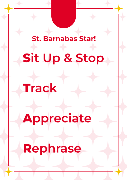 consistent approaches such as St Barnabas STAR and 1, 2, 3 fingers